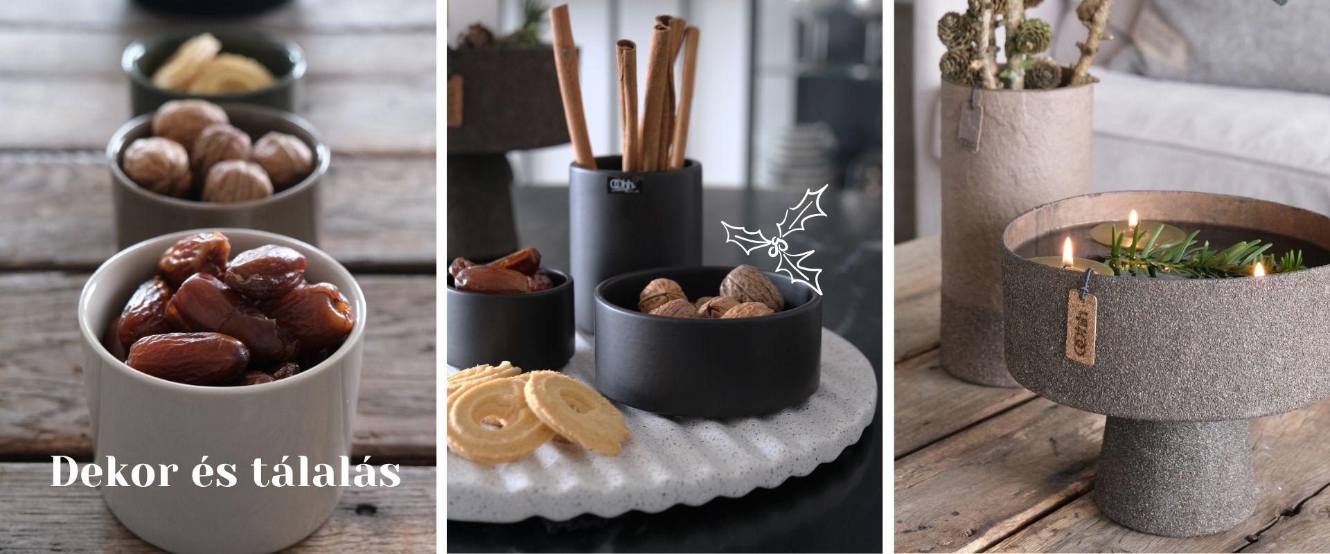 Ebben a válogatásban vázák, papír és fűrészpor kaspók, tálcák és kerámiák várnak – olyan darabok, amelyek egyszerre díszítik és szolgálják az ünnepi asztalt, a komódot vagy a vendégváró sarkot.