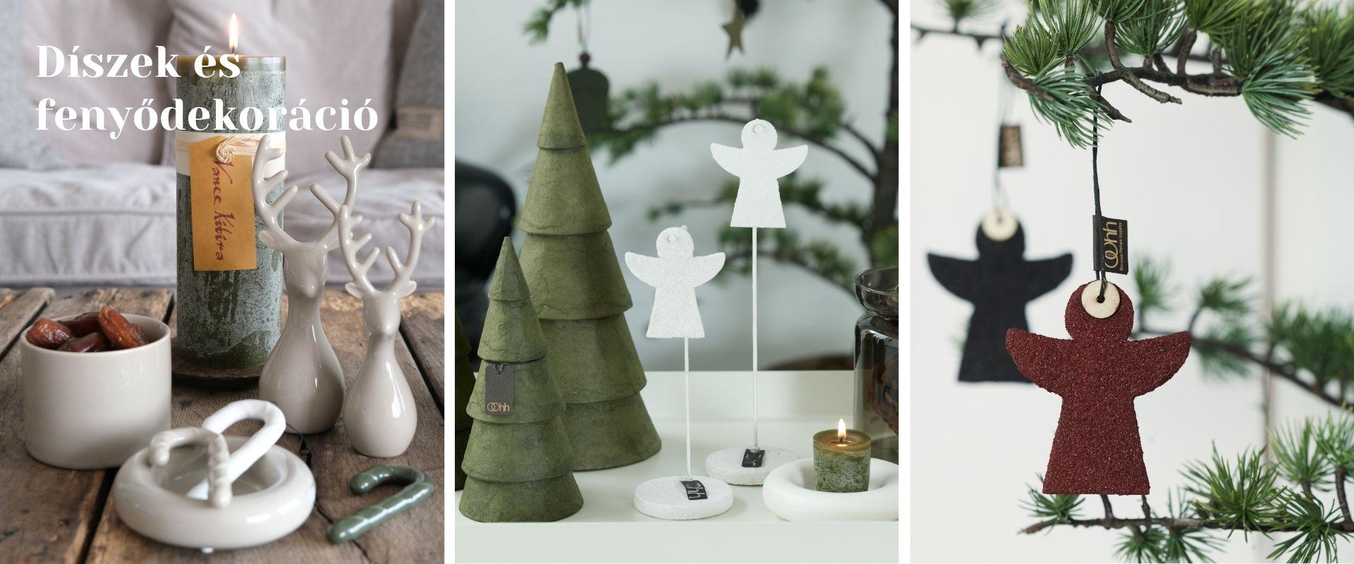 Karácsonyi díszek és fenyődekorációk