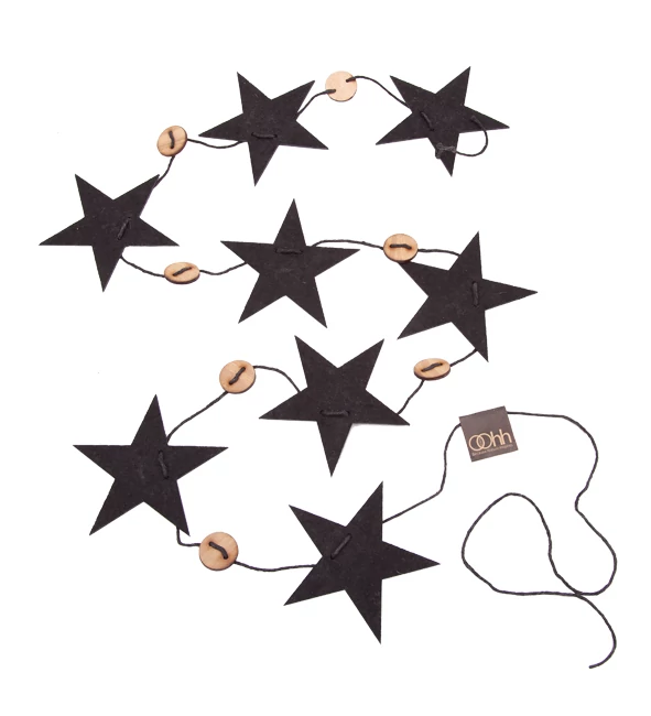 Ökofilc csillag girland - Fekete - 1,5 méter
