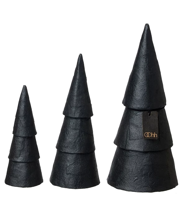 Kézzel formált mini fenyők, elegáns fekete árnyalatban