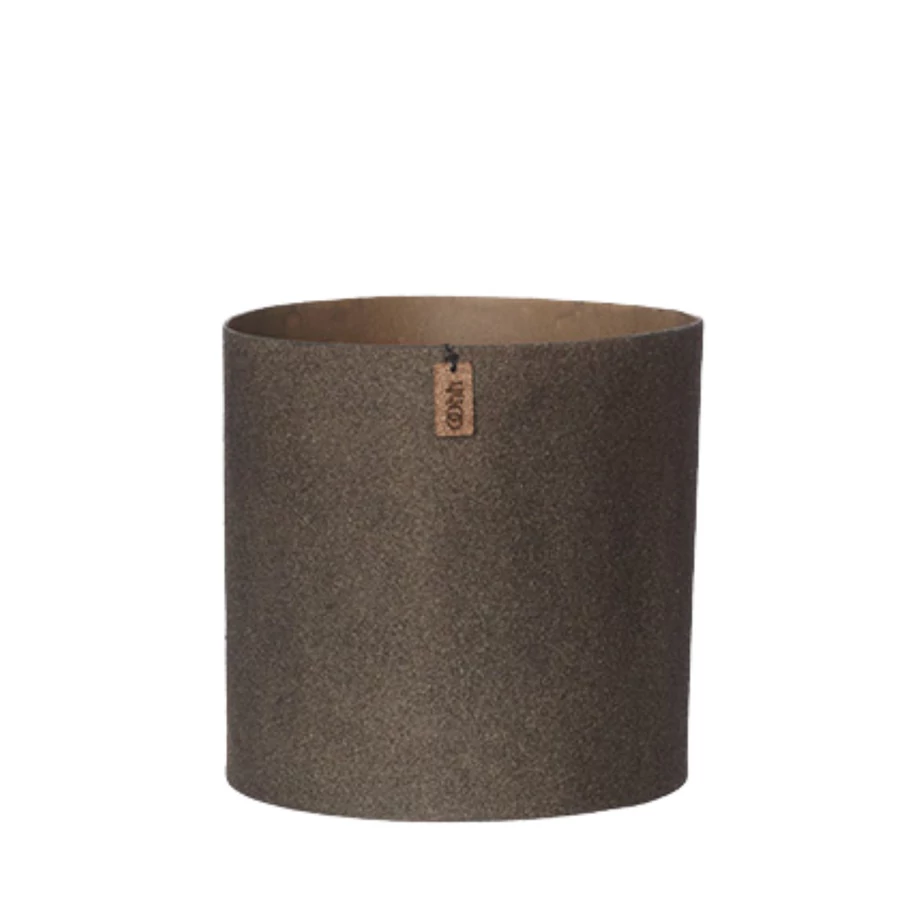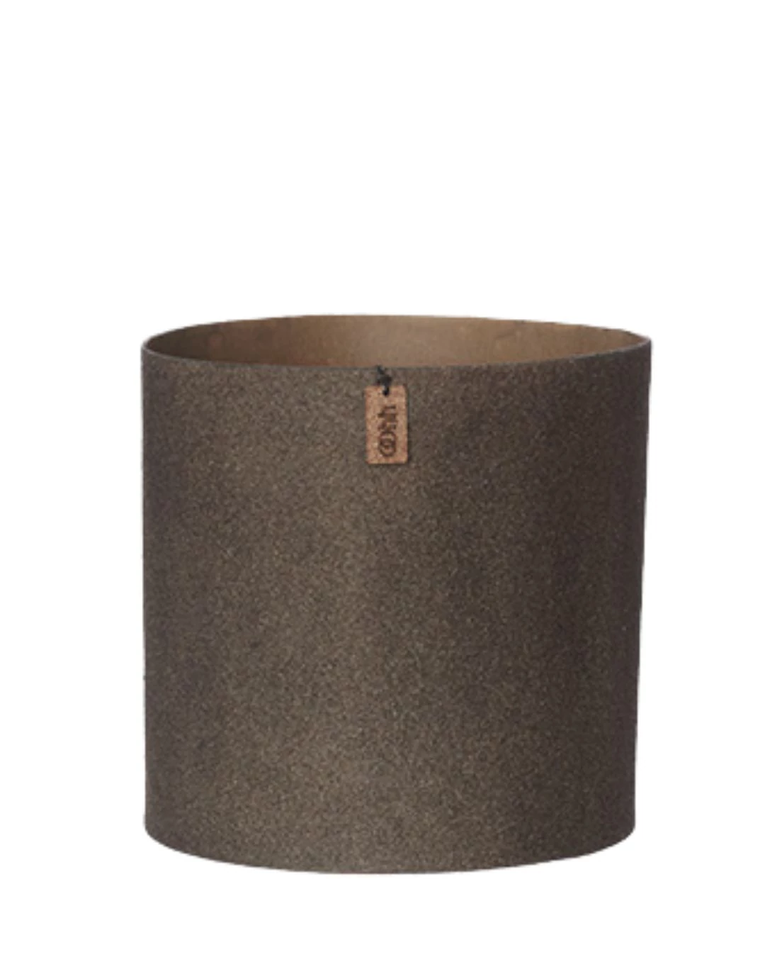 Különleges, kézzel készült kaspó a WOOD’z kollekcióból – 100% újrahasznosított papírból, természetes latexbéléssel, kívül pedig újrahasznosított fűrészpor díszítéssel. A természetes, meleg kávébarna árnyalat és a nagyméretű, időtálló forma különösen alkalmassá teszi szobanövények, nagyobb cserepes növények vagy kisebb fák elhelyezésére. A textúrázott felület és a gondosan kialakított arányok révén ez a kaspó nemcsak funkcionális, hanem vizuálisan is meghatározó eleme lehet a térnek.